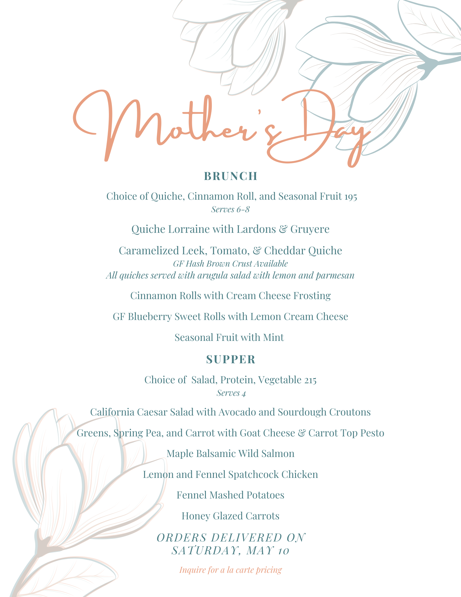 All Quiches will be served with Arugula Parmesan Salad. All Brunches Include Seasonal Fruit & Mint.